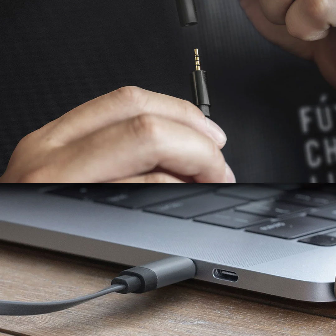 Подключайтесь практически к любому устройству, которое у вас есть сменными шнурами 3,5 мм, USB-C или lightning.